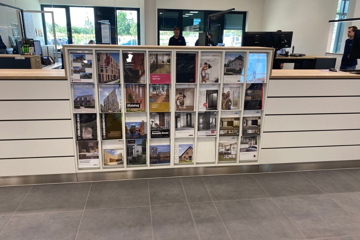 Entdecken Sie unsere modern gestalteten Ausstellungen, die eine große Bandbreite an Produkten abdecken – von Bodenbelägen, Innentüren, Verblendern bis hin zu Dachmaterialien. In einer inspirierenden Umgebung finden Sie alles, was Sie für Ihre Projekte benötigen.